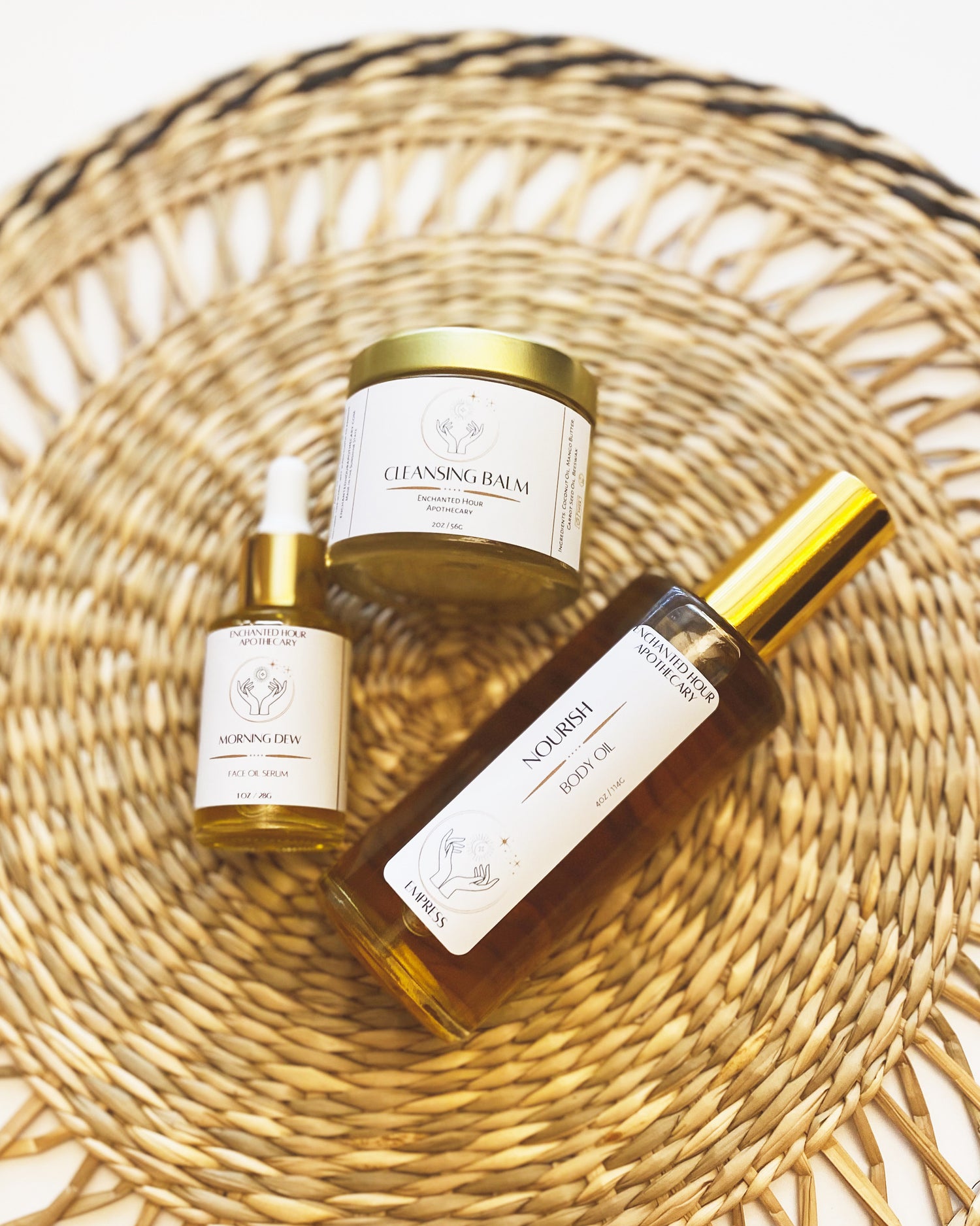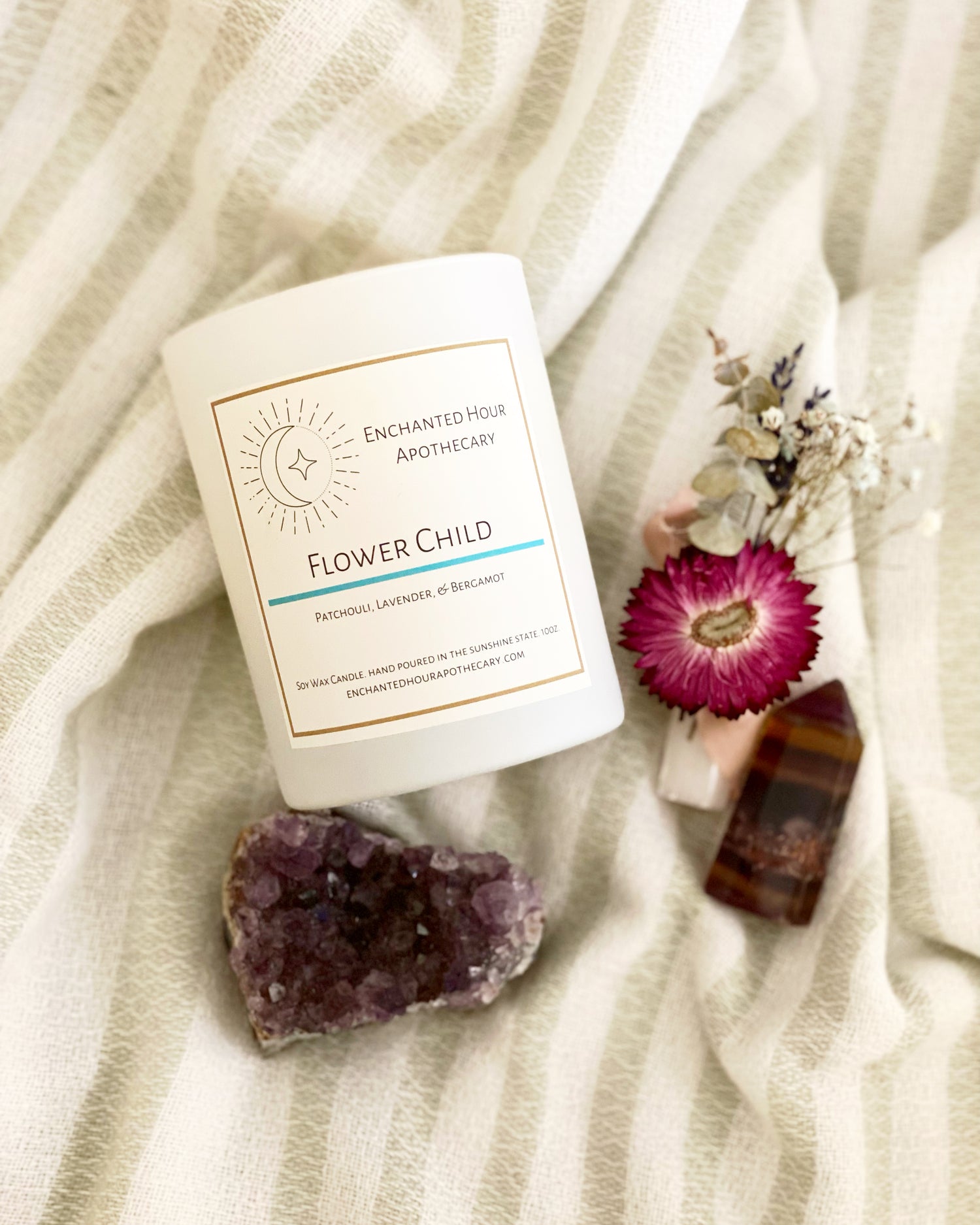Enchanted Hour is a luxury, small batch, candle and body line. Inspired by nature, astrology, and memories. Our mission is to have each Enchanted Hour Apothecary scent create a unique and special experience for you. When you light one of our candles or spitz on our perfume, the intention is to transport you, either to a great memory or a moment of escape.